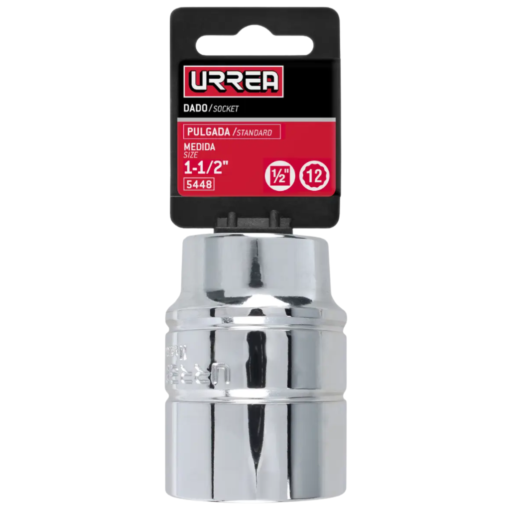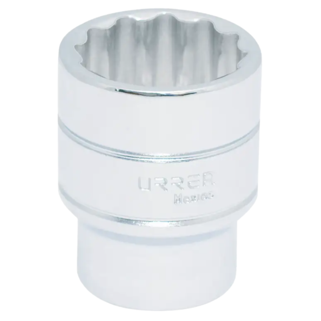 Dado individual para uso con herramientas de impacto o manuales que tienen un cuadro de 1/2″. Está diseñado para encajar sobre tuercas y tornillos de 1‑1/2 pulgadas (medida SAE/imperial) con 12 puntas en la apertura interior, lo que permite un contacto eficaz con los elementos de fijación y facilita el apriete o afloje sin dañar las cabezas. Este tipo de dado es útil en trabajos pesados o cuando se requiere un tamaño grande fuera de las medidas comunes. El acabado cromado ayuda a resistir la corrosión y facilita la limpieza.