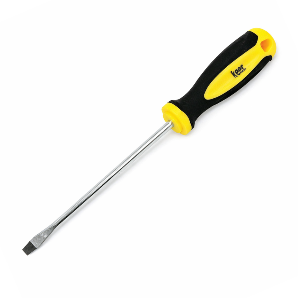 Desarmador tipo cabinet diseñado para trabajos de ajuste y mantenimiento que requieren precisión y resistencia. Cuenta con barra de acero templado que brinda mayor durabilidad y una punta recta de 3/16" para un ajuste seguro en tornillos estándar. Su longitud de 8" permite mayor alcance en áreas profundas o de difícil acceso. El mango ergonómico fabricado en polipropileno con recubrimiento de TPR ofrece un agarre cómodo, antiderrapante y mayor control durante el uso, incluso en jornadas prolongadas. Ideal para uso profesional y doméstico en trabajos eléctricos, mecánicos y de ensamble.