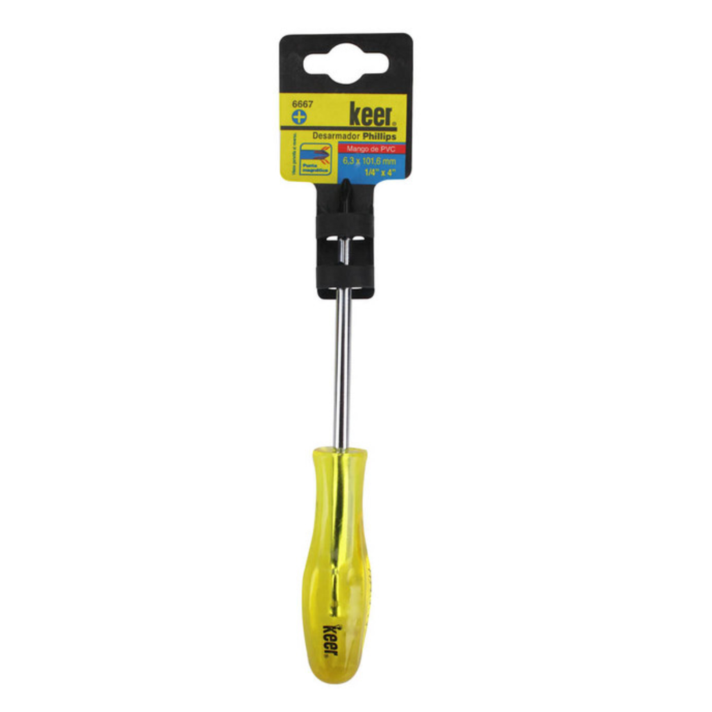 El Desarmador Phillips 1/4" x 4" está diseñado para ofrecer un ajuste firme y una transmisión de fuerza eficiente en tareas de ensamble, reparación y mantenimiento. Su punta en cruz permite trabajar con tornillería estándar con precisión, mientras que su tamaño proporciona un equilibrio ideal entre alcance y control. Es una herramienta confiable y cómoda para uso profesional o doméstico, indispensable en cualquier equipo básico de trabajo.