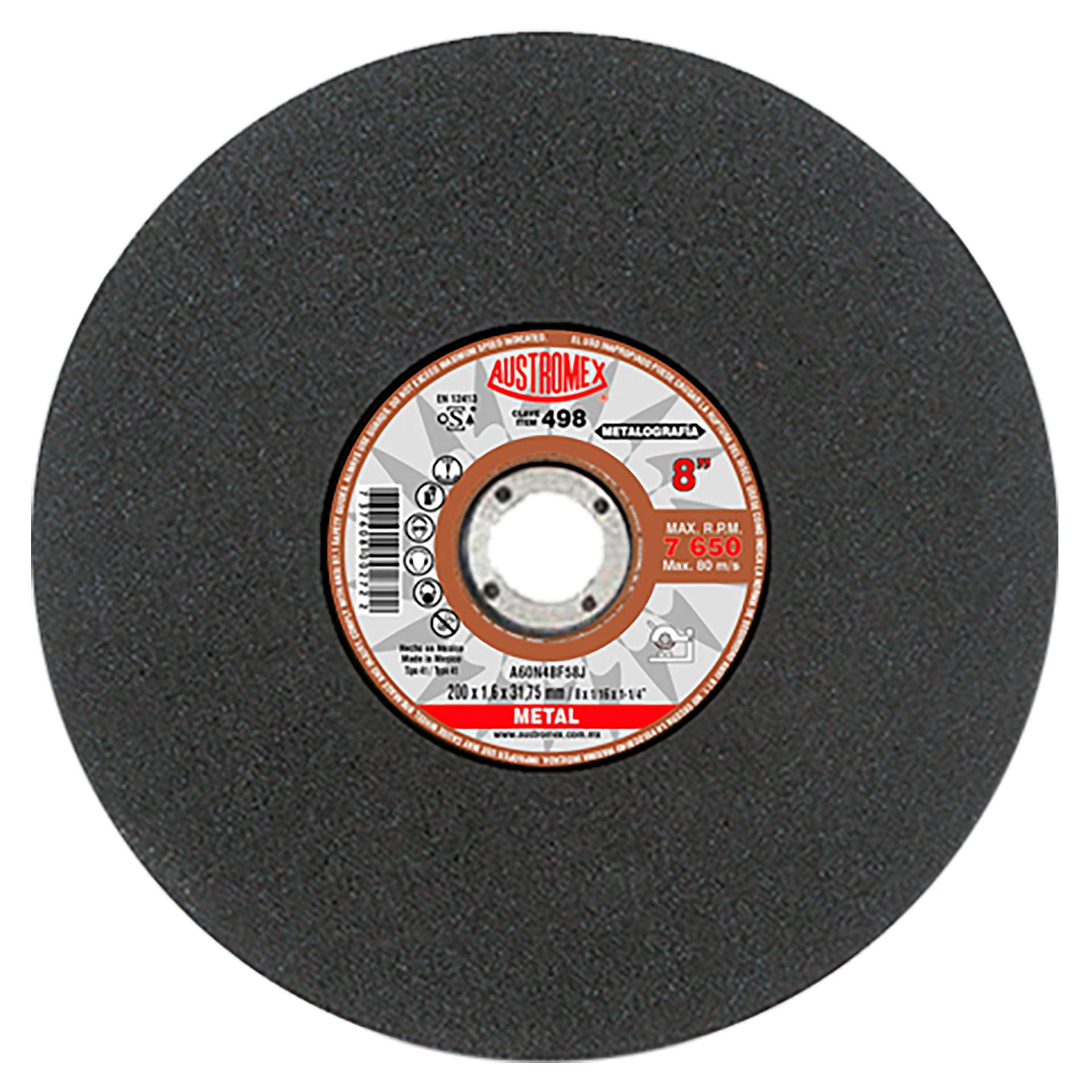 Disco Abrasivo Corte Pruebas Metalográficas Austromex, de 200 x 1.6 x 31.75 mm