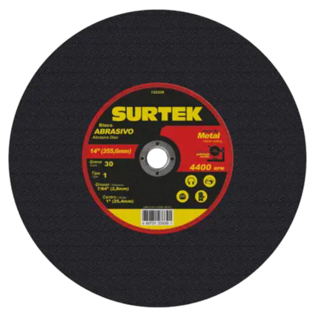El disco abrasivo tipo 1 para metal de 14 x 7/64 pulgadas es un disco de corte diseñado para usarse en máquinas estacionarias como tronzadoras o cortadoras de metal. Está fabricado con abrasivo de óxido de aluminio, lo que permite realizar cortes rápidos y eficientes en materiales metálicos. Su diseño plano tipo 1 es ideal exclusivamente para corte, proporcionando precisión y estabilidad durante la operación.