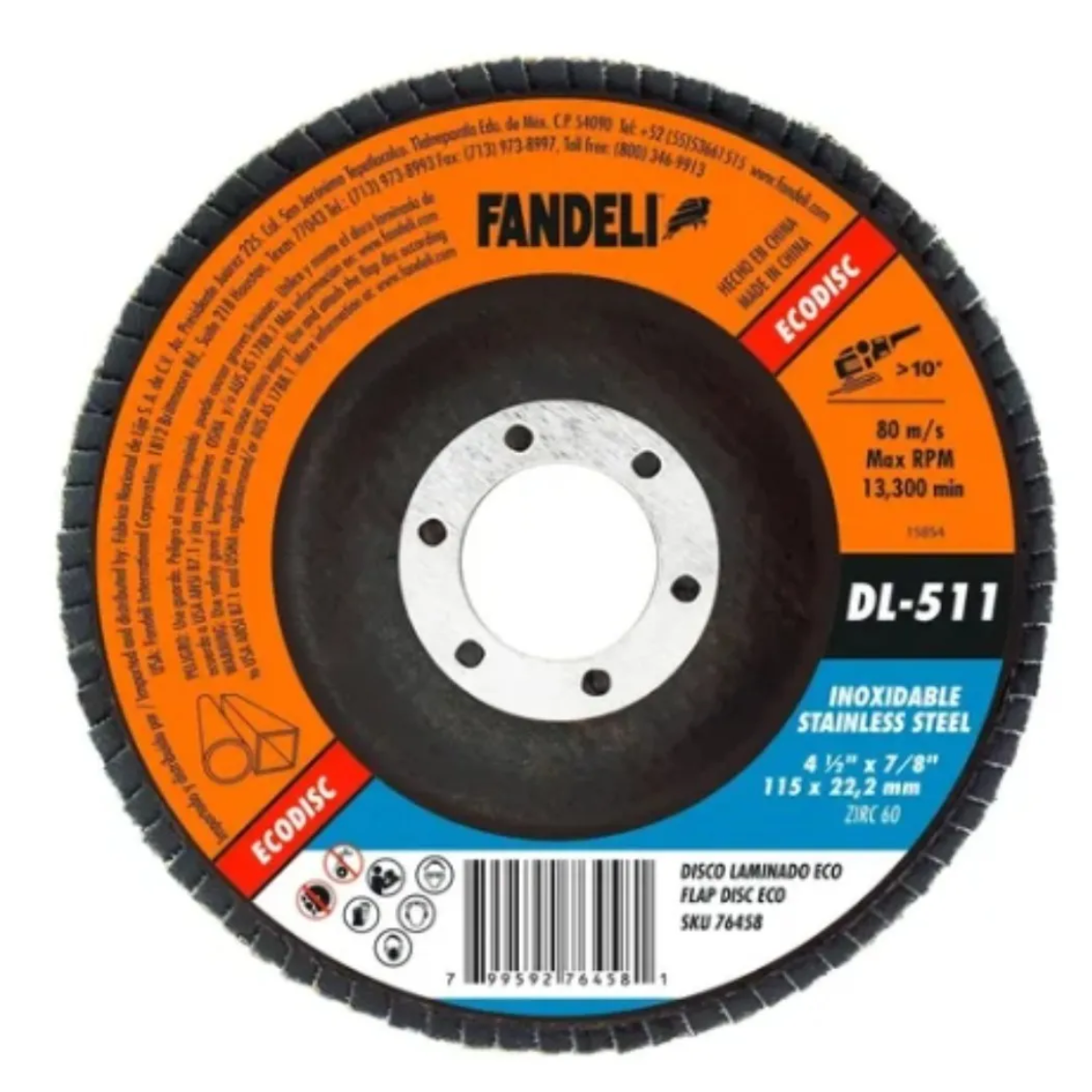Disco Laminado Zirconia Fandeli Grano 60 Naranja . Disco laminados de zirconia Fandeli grano 60, ideales para el desbaste y limpieza de acero inoxidable, así como para la eliminación de cordones de soldadura.