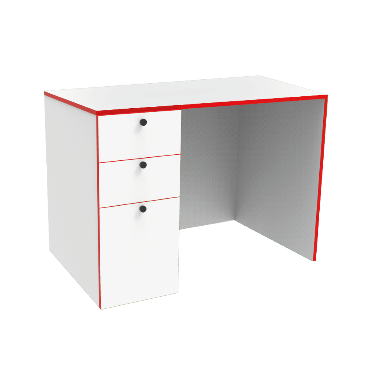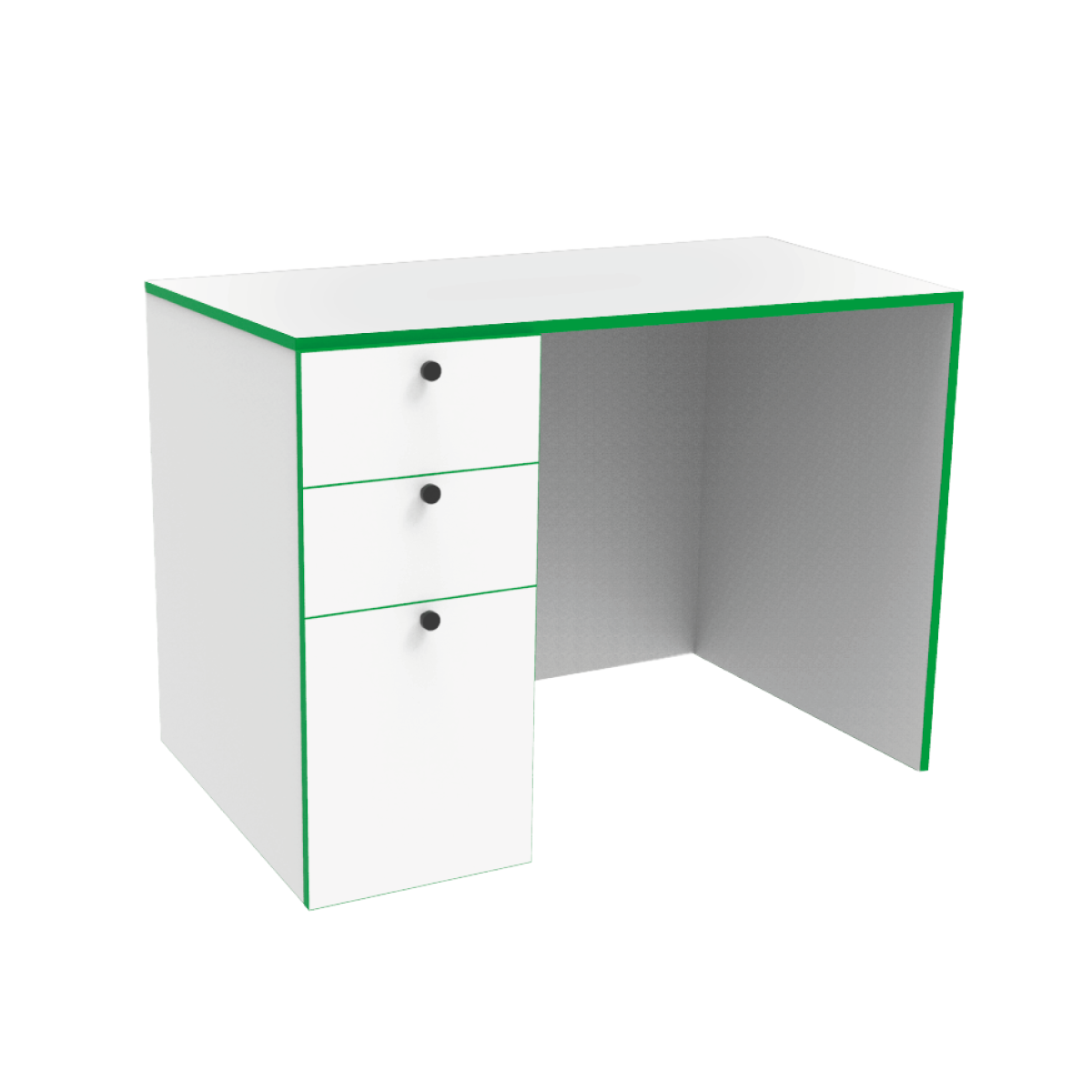 Escritorio con cajonera fabricado en melamina, con el tamaño ideal para espacios escolares, áreas de juego, consultorios o el hogar.