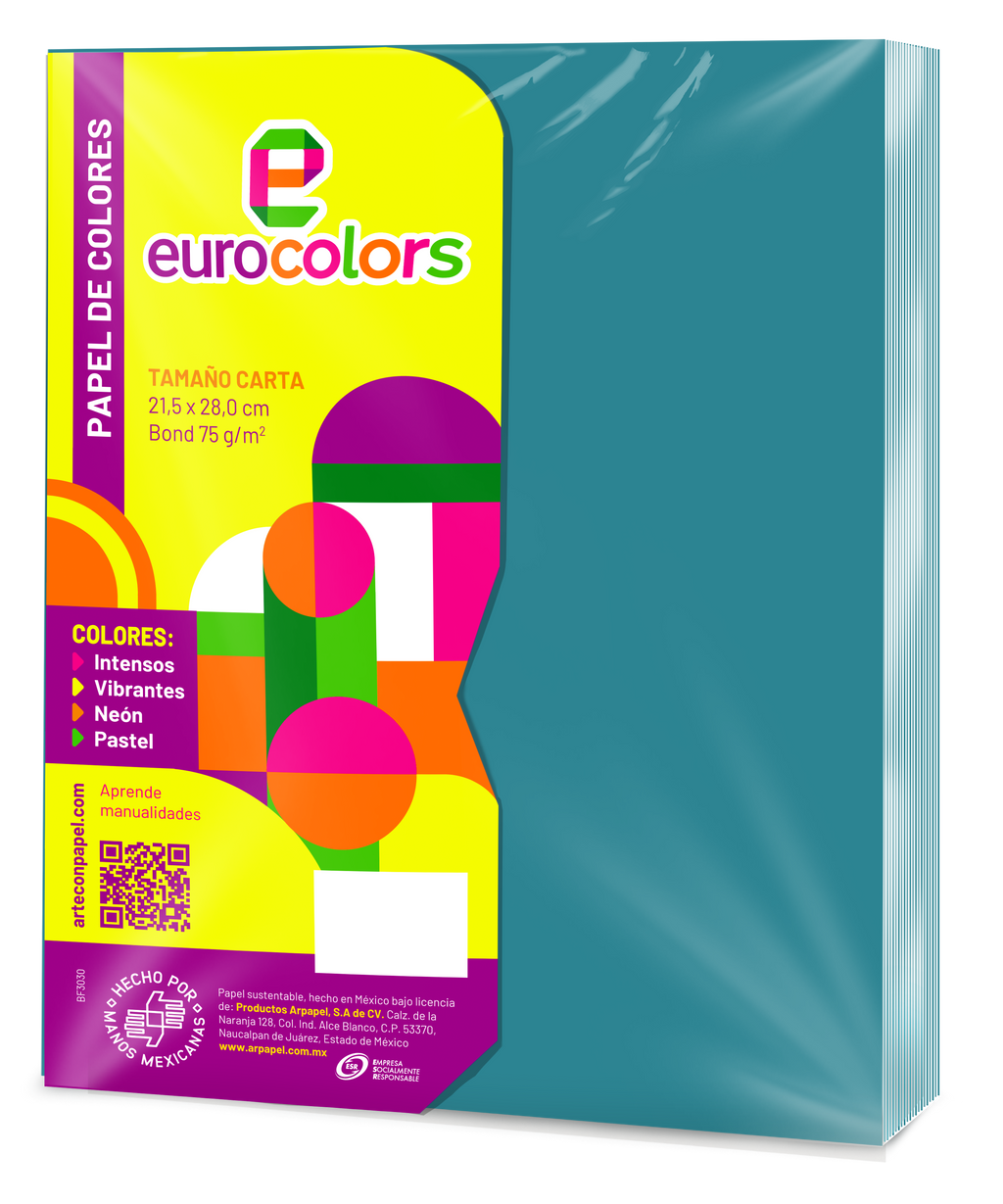 Hojas Tamaño Carta Eurocolors Paquete de 100 hojas Colores Turquesa.