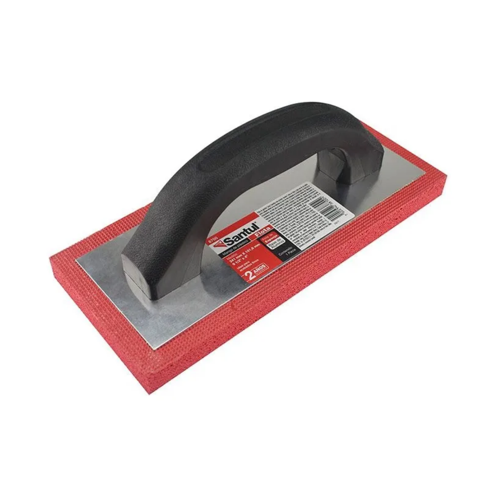 La Flota Santul ST387004 de 9 1/2 x 3/4 pulgadas es una herramienta manual diseñada para trabajos de albañilería y acabados en construcción. Su diseño permite extender, alisar y dar textura a superficies de cemento, mortero o yeso. El mango de plástico con acabado áspero proporciona un agarre firme y seguro, reduciendo el deslizamiento durante el uso y ofreciendo mayor control al operario.