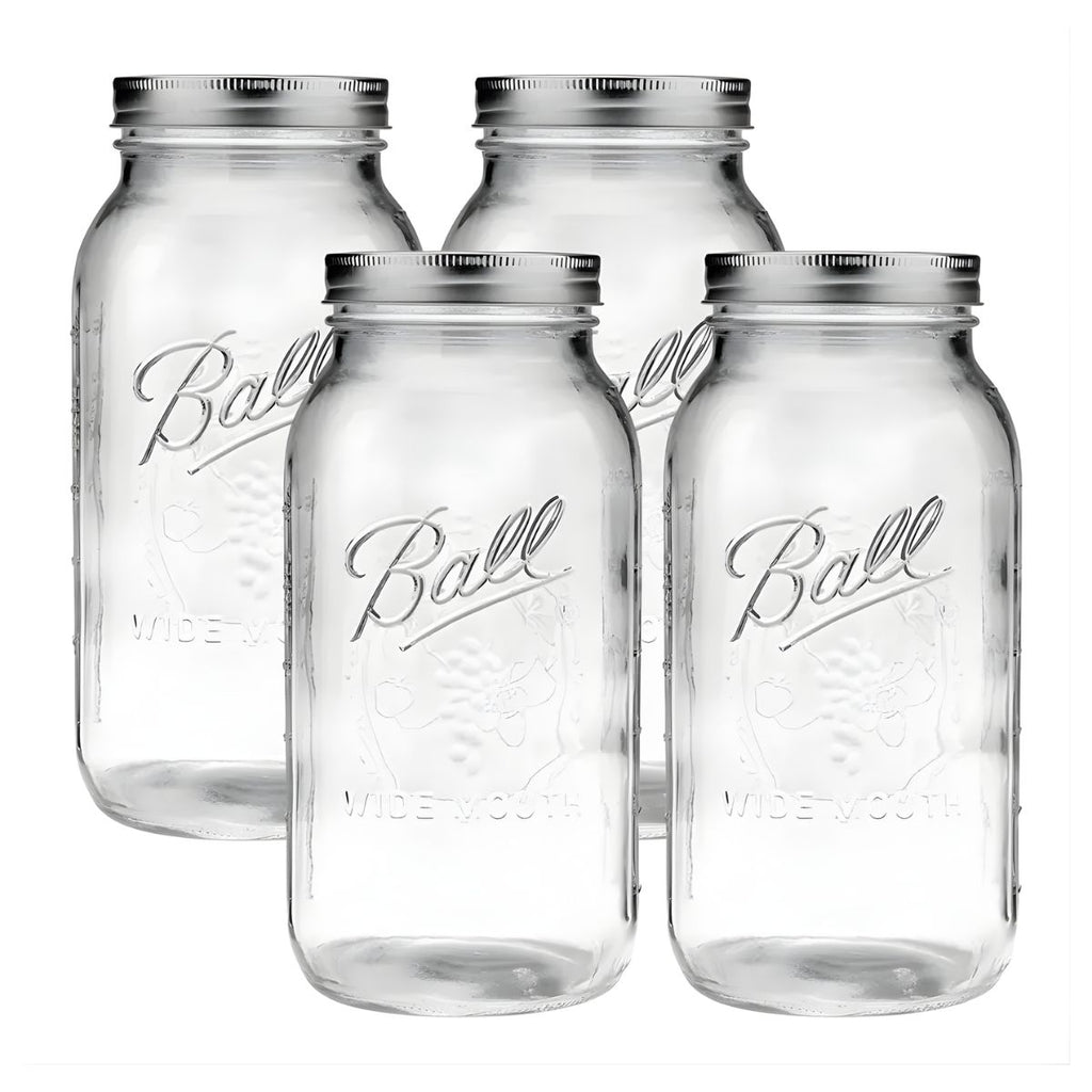 Caja con 4 Frascos Mason Jars Ball de 64oz Boca Ancha ( Incluye tapa de 2 tiempos )