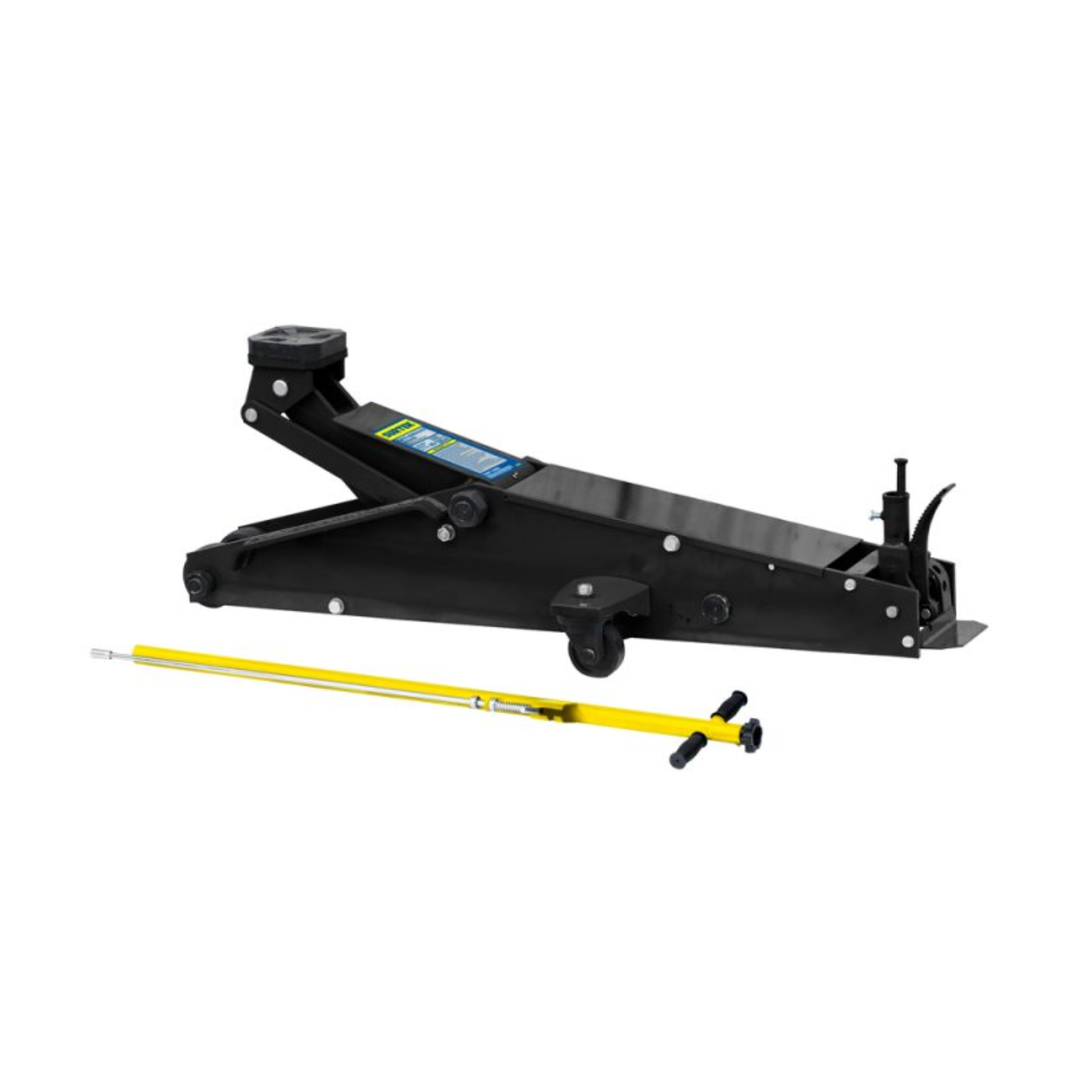 • Ruedas giratorias traseras que facilitan el acomodo del gato. Estructura de acero reforzado. Asa plástica para fácil transportación. Con bomba de aproximación y carga. Válvula de liberación en maneral.