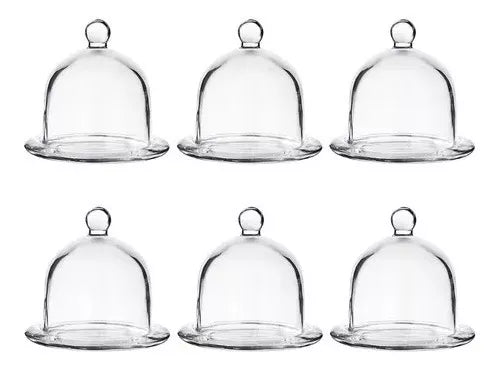 Juego 6 Bombonera Campana De Vidrio Dulcero Tapa Pastel 12cm
