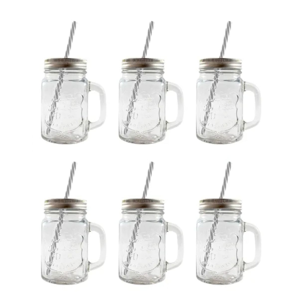 6 tarros Mason Jar con tapa y popote