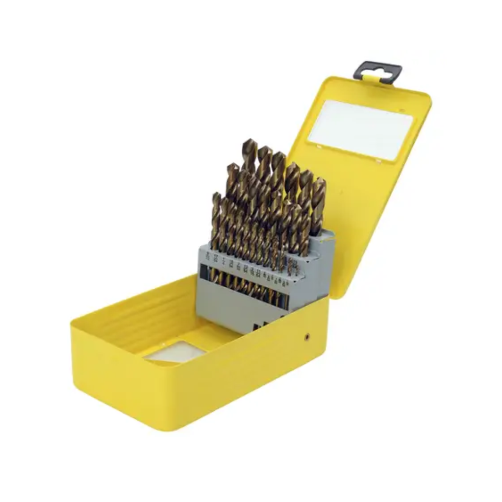 Juego de brocas con cobalto de acero de alta velocidad (HSS-Co), zanco recto, de 29 piezas, diseñado para perforar materiales de gran dureza como acero inoxidable y metales resistentes. Su composición con cobalto ofrece mayor durabilidad, resistencia al desgaste y mejor desempeño frente a las brocas convencionales de acero rápido.