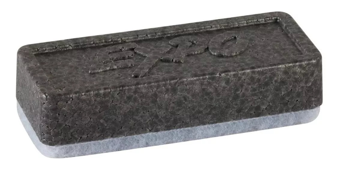 El borrador suave de fieltro elimina rápidamente las marcas en cualquier superficie de pizarra, porcelana o melamina.