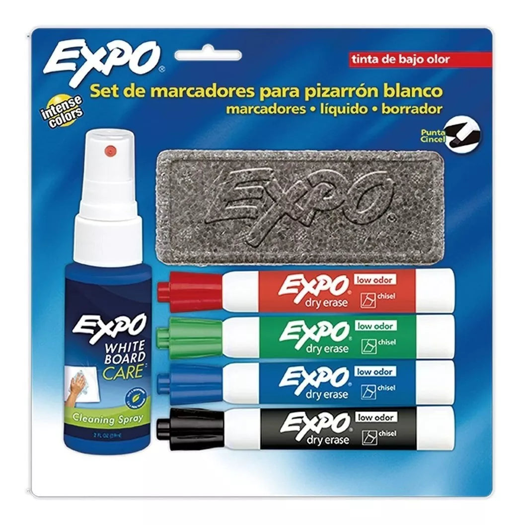 Kit 4 Plumones Pizarrón + Borrador + Liquido Limpiador Expo
