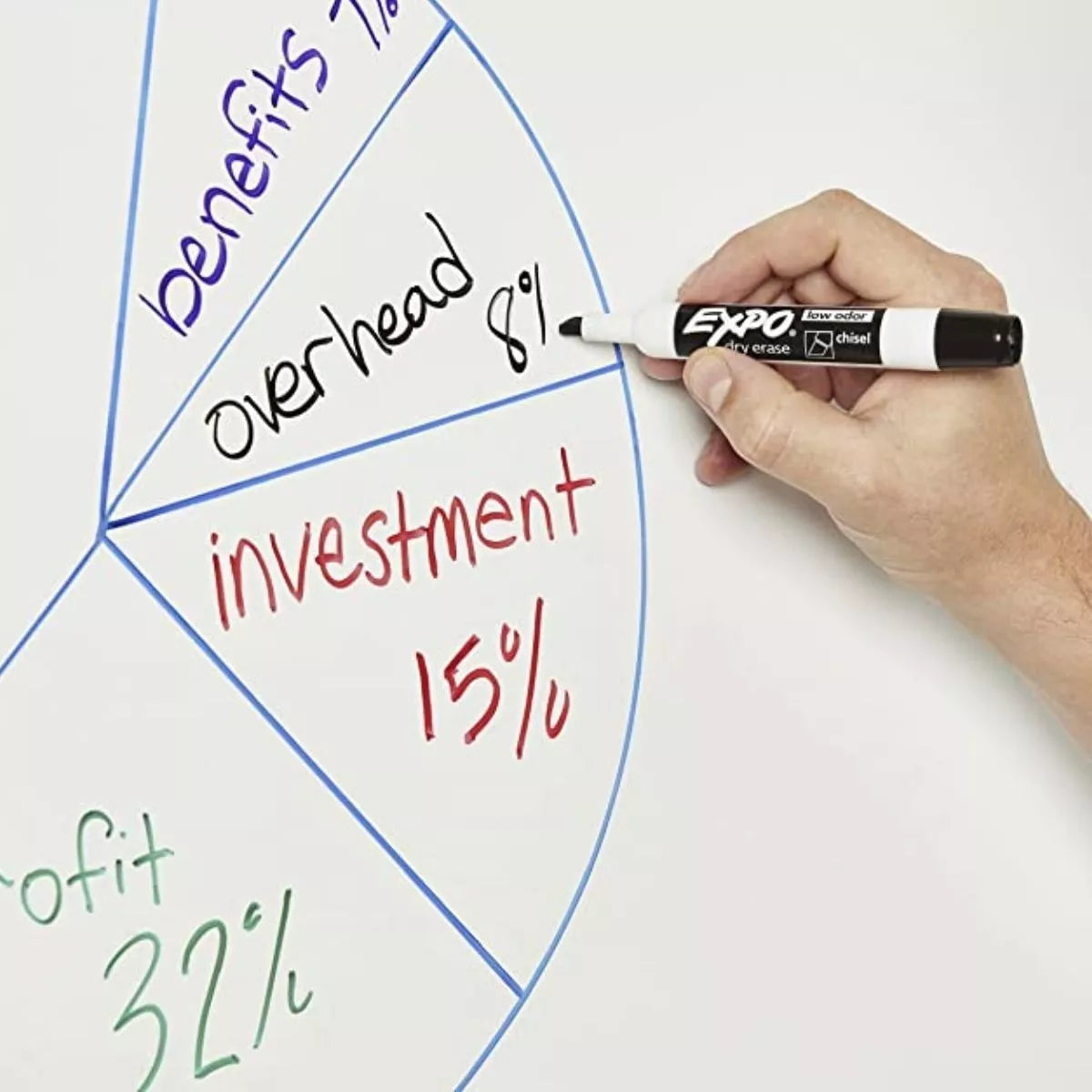 La tinta brillante, vívida y no tóxica es de secado rápido, resistente a las manchas, fácil de ver desde la distancia y proporciona una calidad de color uniforme. La punta de cincel versátil permite una escritura amplia o fina. La tinta está especialmente formulada para ser de bajo olor. Perfecto para usar en aulas, oficinas pequeñas y hogares.