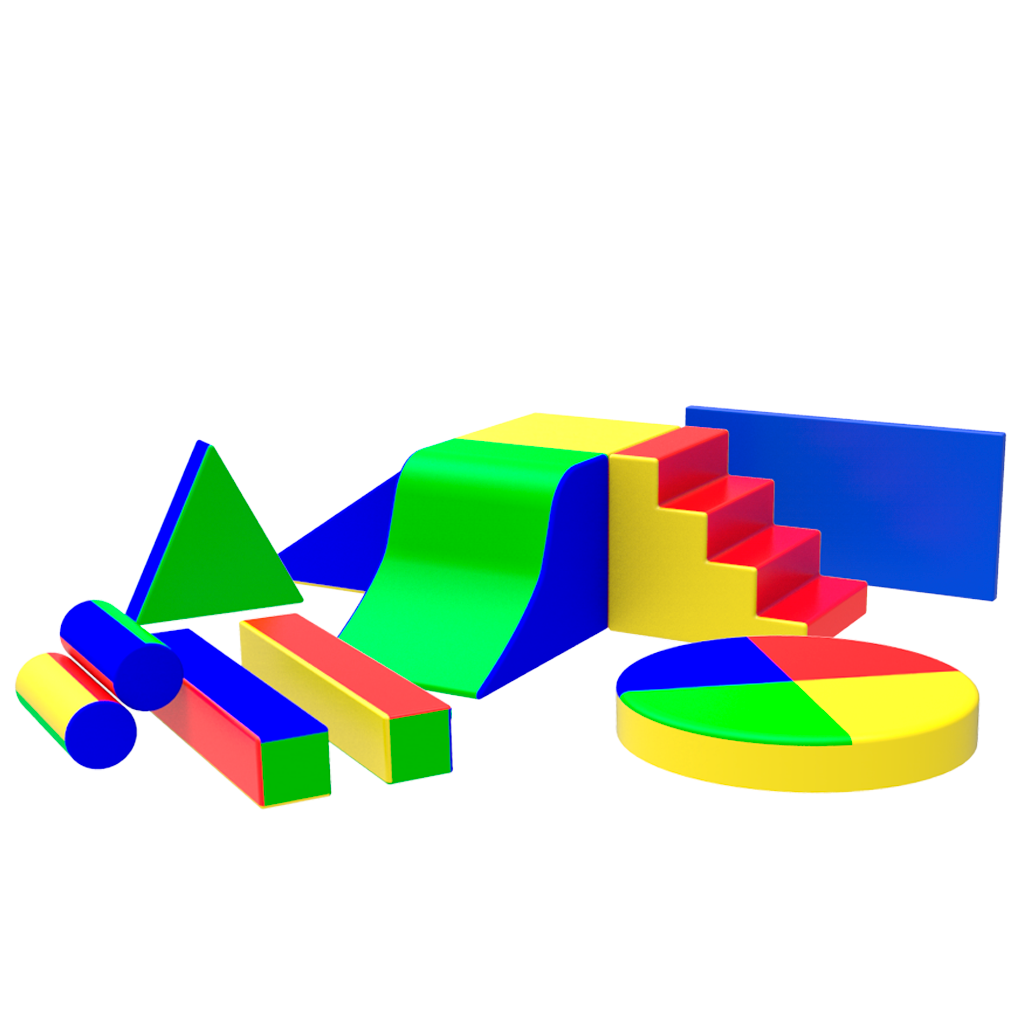 Estimula la psicomotricidad gruesa, ayudando a coordinar sus movimientos, subiendo, bajando, resbalando, equilibrio orientación, coordinación, ojo, pie, mano, perfeccionando sus movimientos. Material: Vinil, 2 rodillos de (20×60 cm) y de (30×60 cm)  1 triángulo de (50×15 cm), 2 postes de (70x15x20 cm), 2 rampas de (70x40x40 cm),1 colchoneta de (120x60x5 cm), 1 cojín redondo (60×15 cm),1 escalera de (40×60 cm) 1 cubo de (40x40 cm).