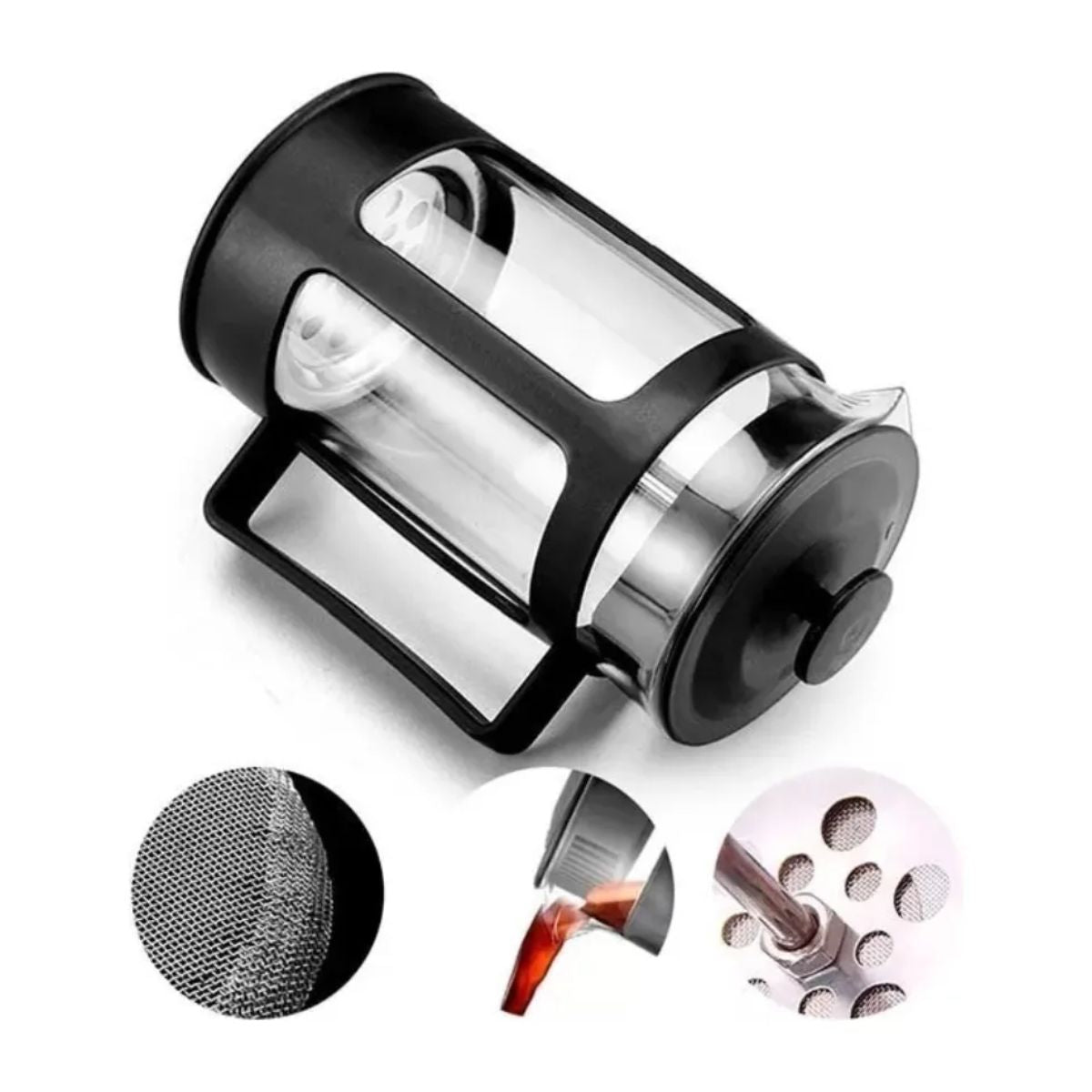 Kit2 Prensa Francesa 350ml Y 1 Prensa Francesa 1000ml Vidrio Negro