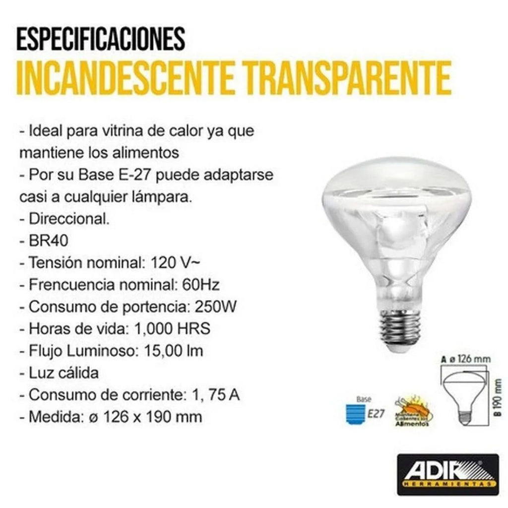 Lampara Incandescente Reflector 250w E-27 Vitrinas Calor Luz Cálida