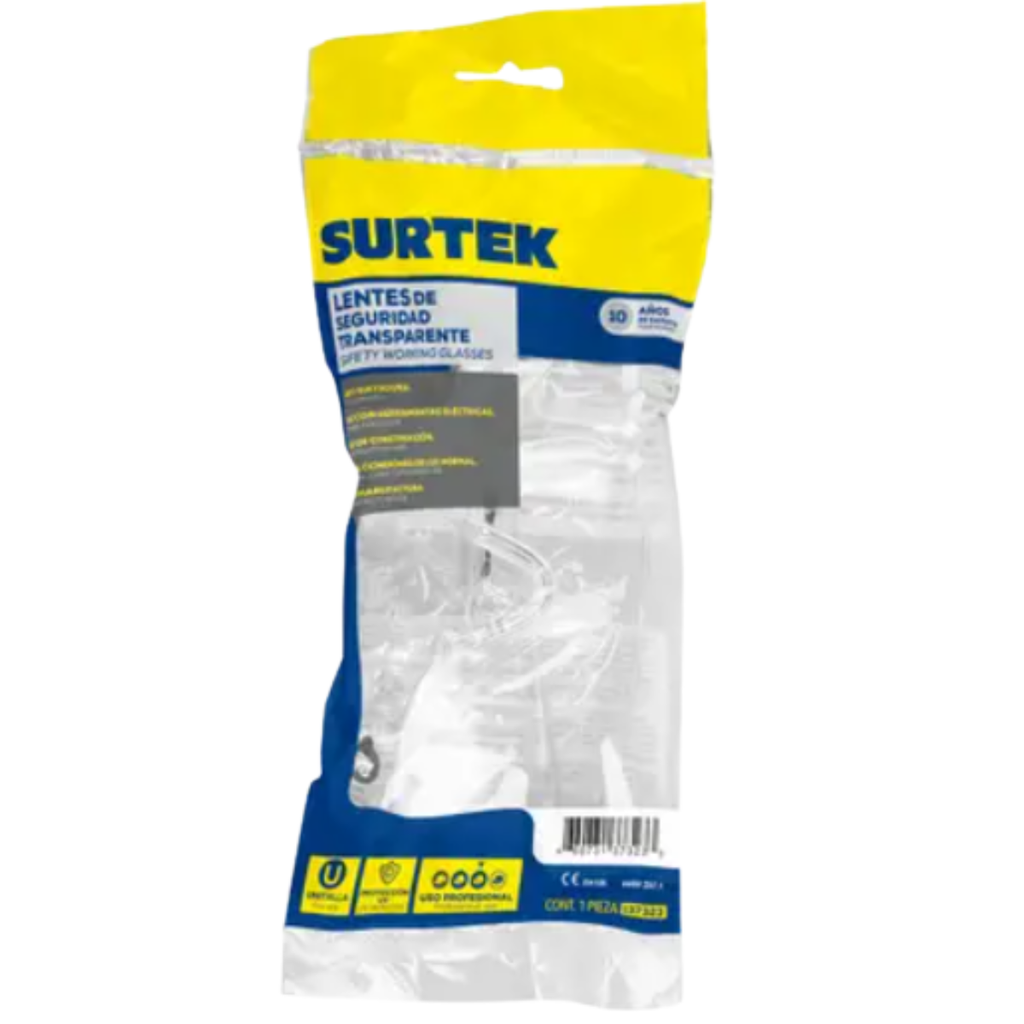 Los lentes de seguridad modelo tradicionales, transparentes, son un equipo de protección personal diseñado para proteger los ojos de impactos, polvo, partículas y salpicaduras de sustancias químicas en ambientes industriales, de laboratorio o de construcción. Su diseño clásico y envolvente proporciona una cobertura adecuada, mientras que el material transparente permite una visibilidad clara y sin distorsión.