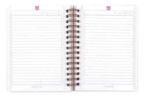 Cuaderno argollado marca Kiut de 160 hojas con una carátula dura y resistente, tamaño: francés, rayado: raya. Ideal para el nivel de escolaridad: Secundaria - Preparatoria. Cuenta con un bolsillo, acabados en barniz y metalizado, incluye separadores para organizar tus materias.