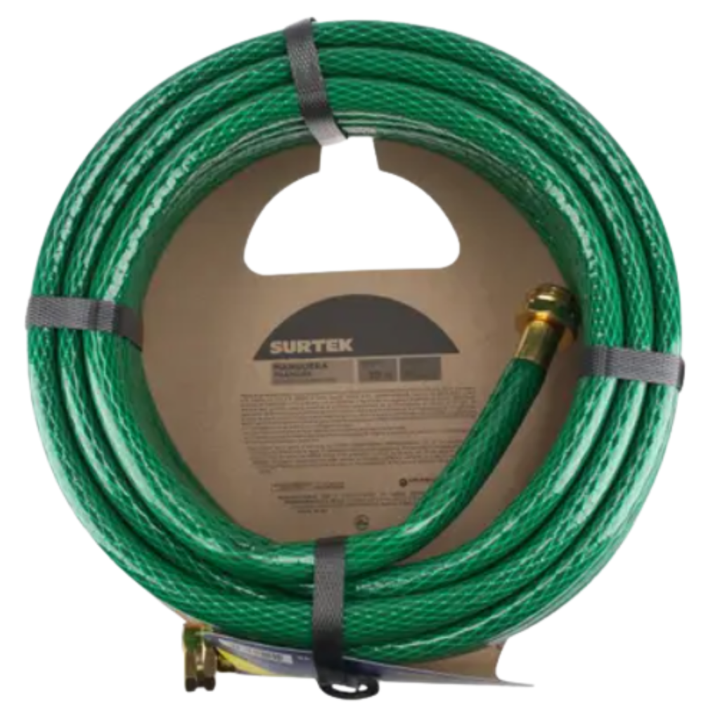 La manguera trama verde Surtek de 1/2 pulgada y 10 metros está diseñada para uso doméstico y comercial ligero, ideal para riego de jardines, lavado de autos y tareas generales con agua. Está fabricada en PVC de alta resistencia con refuerzo interno tramado, lo que le brinda mayor durabilidad y resistencia a la presión. Su color verde ayuda a reducir el desgaste por exposición al sol y facilita su uso en exteriores.