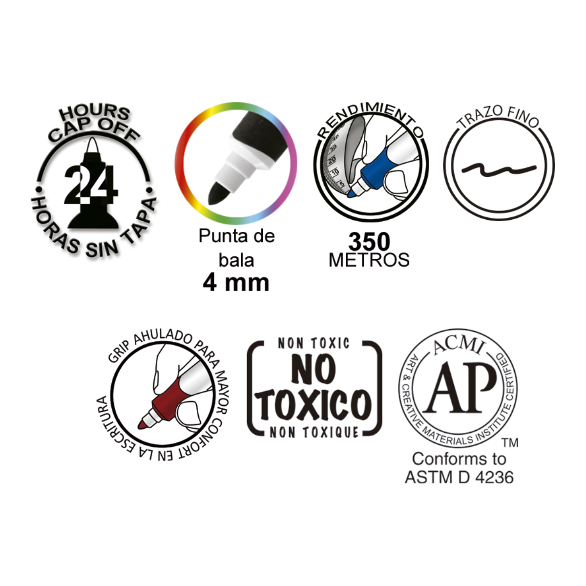 • Colores Vibrantes: Con una selección de colores intensos, podrás resaltar información importante, crear gráficos llamativos y dar vida a tus presentaciones.