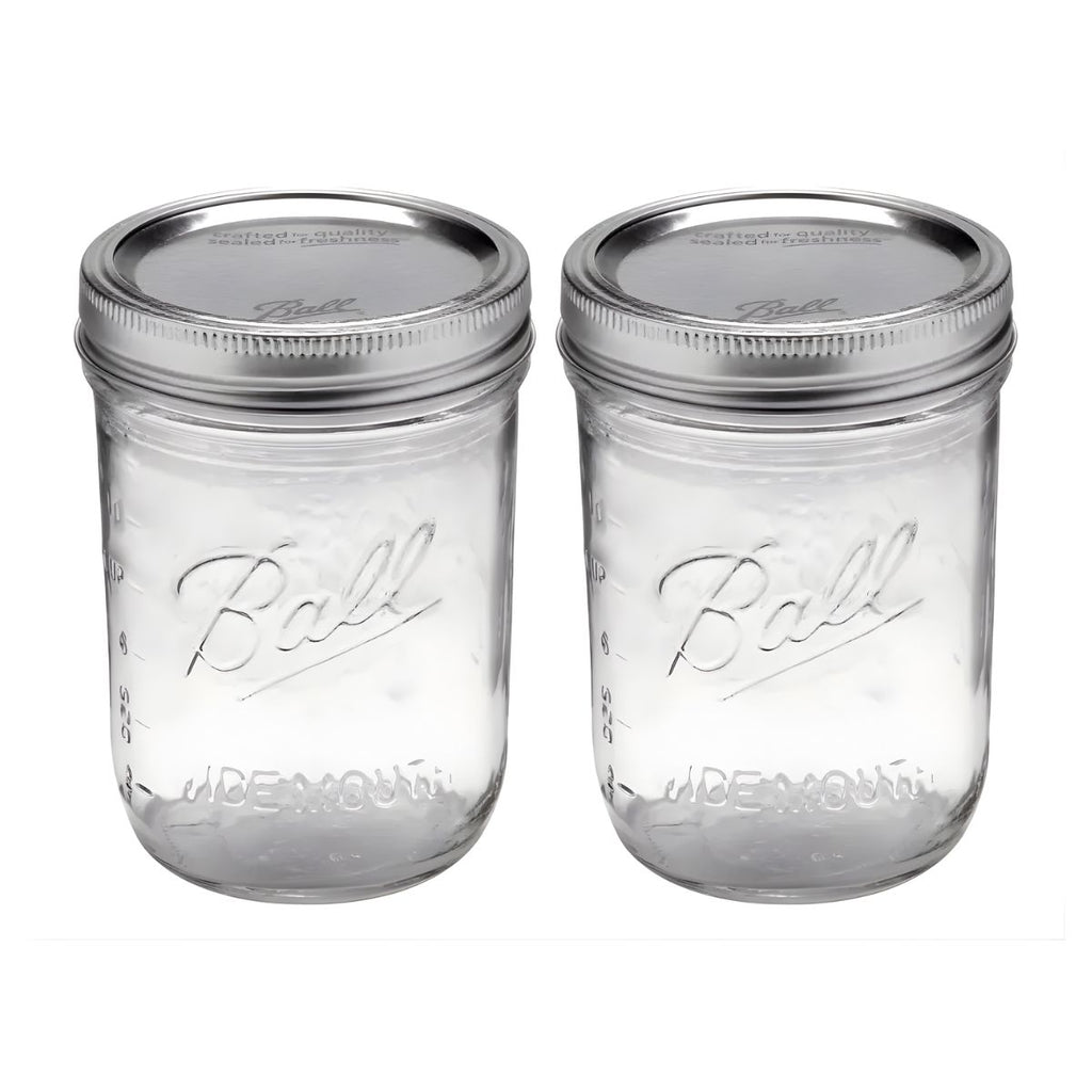 2 pz Frascos Mason Jars Ball 16oz/473ml Boca Ancha (Incluye tapa de 2 tiempos)