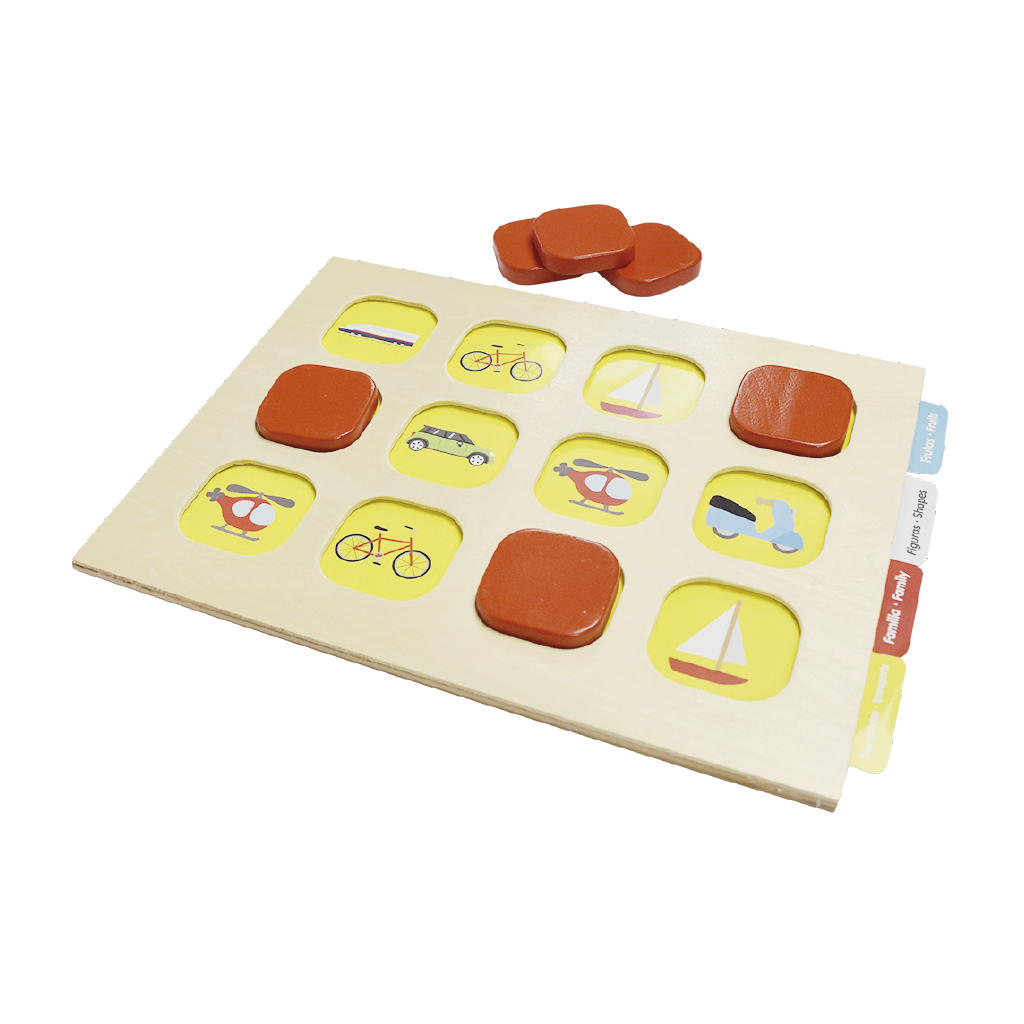 elementos de temas básicos como: Frutas, transportes, figuras,