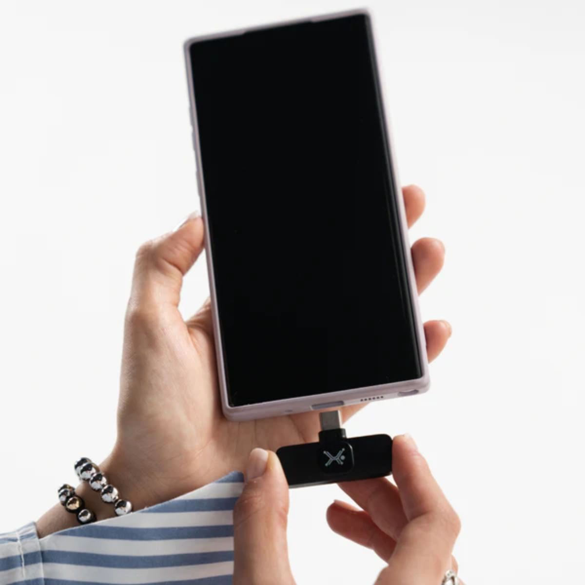 El clip para la solapa hace que sea fácil de llevar, mientras que el conector USB Tipo-C permite cargarlo rápidamente.