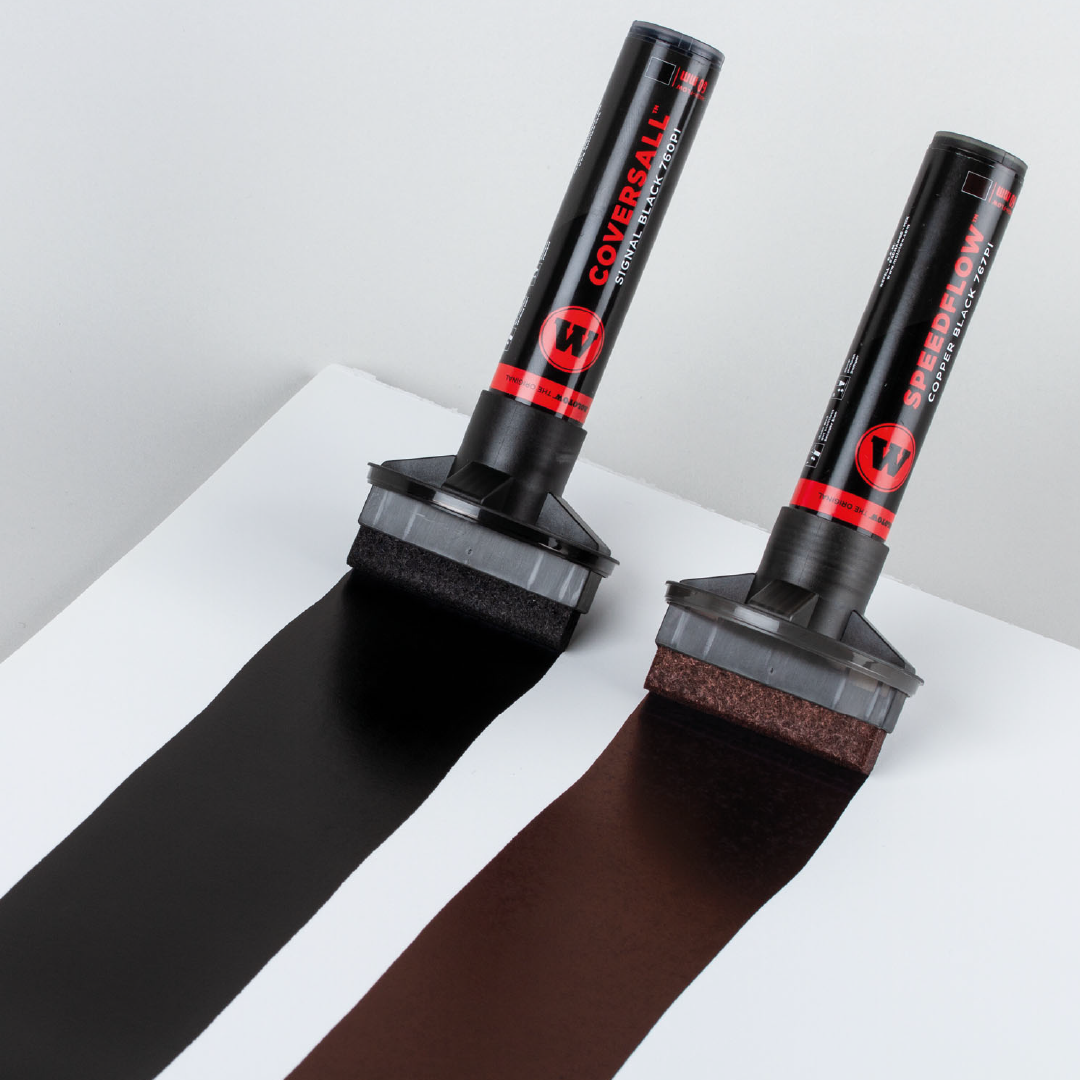 La punta extra ancha hecha a mano de 60 mm es única hasta ahora. En combinación con la tinta SPEEDFLOW negro cobre. La tinta brillante es permanente y permite una aplicación de color de lujo rápido.