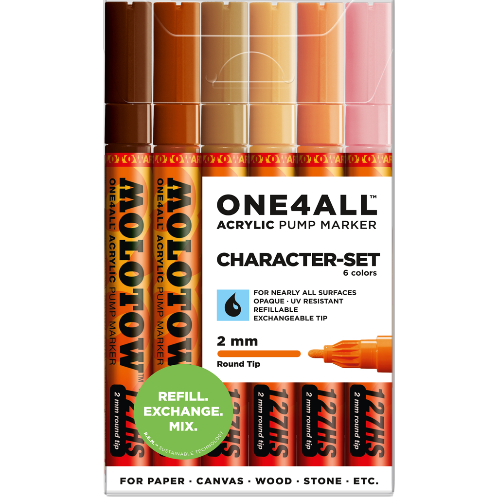 MOLOTOW - Set character con 6 marcadores acrílicos one4all punta redonda 2 mm