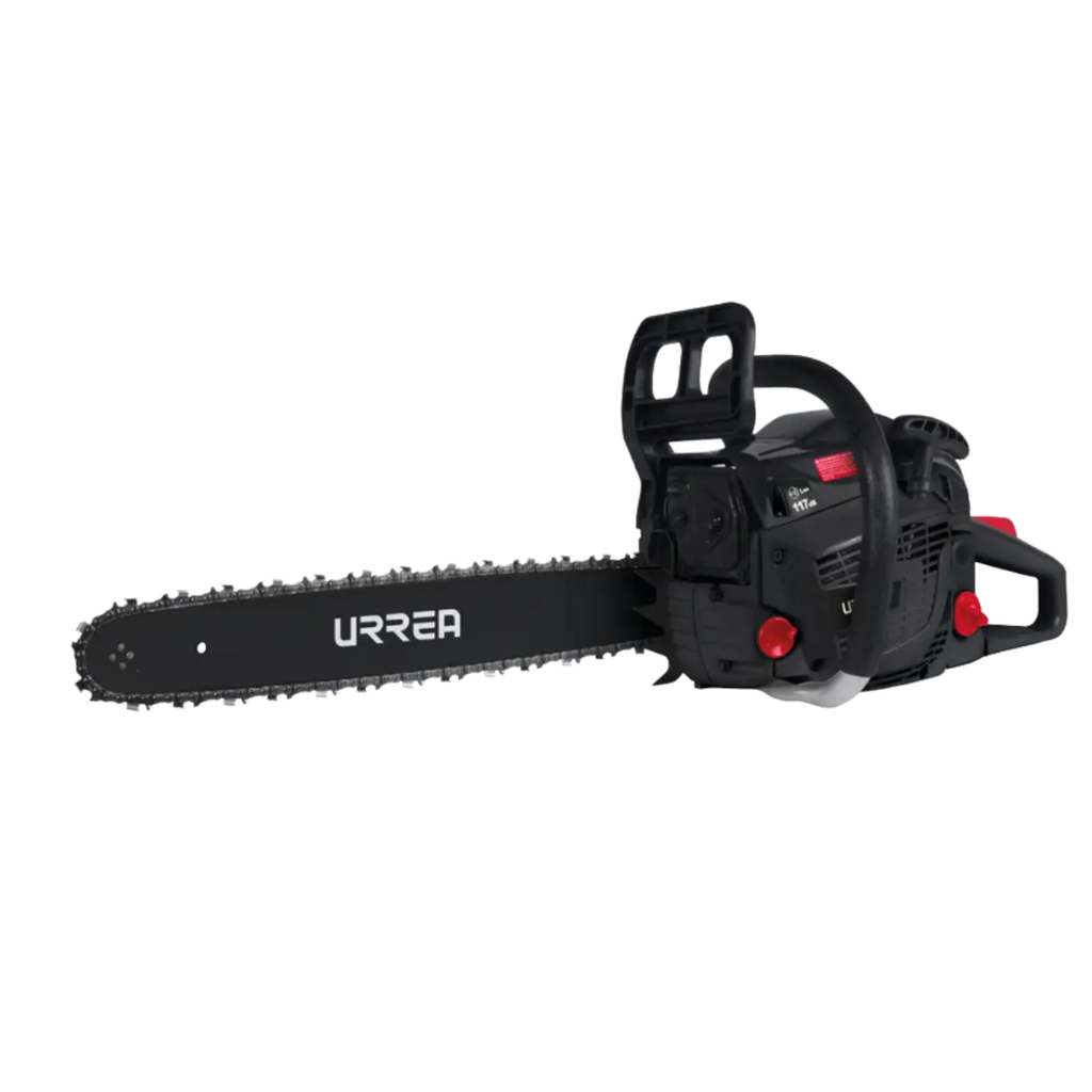 Motosierra de gasolina con espada de 20 pulgadas, diseñada para corte de troncos, poda de árboles y trabajo en jardín o campo. Su motor de dos tiempos y 54 cc ofrece potencia suficiente para tareas medianas y pesadas, combinando buen rendimiento con maniobrabilidad y diseño robusto.