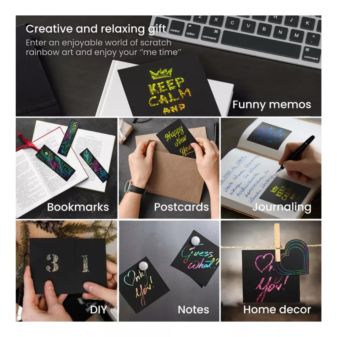Fácil de usar: simplemente rasca las hojas de 3.5x3.5 pulgadas y deja que tu imaginación haga el resto.