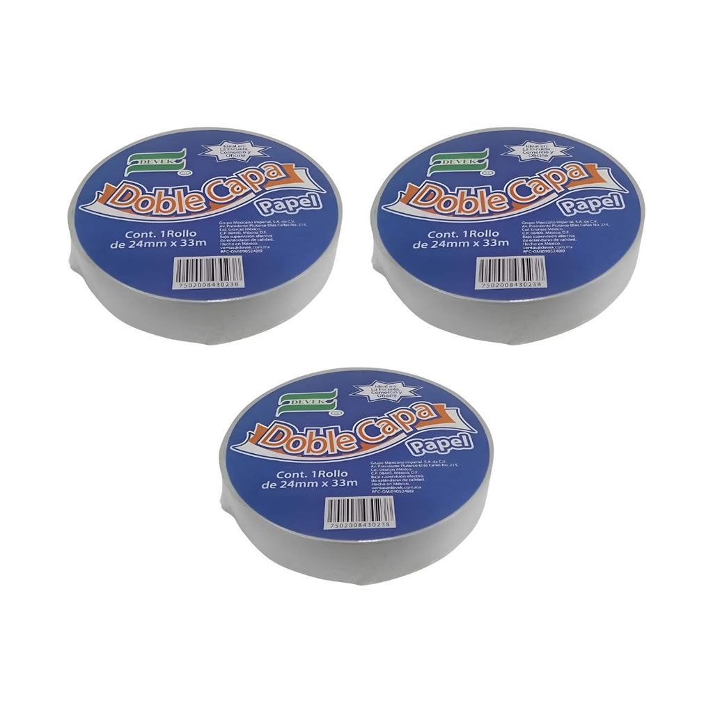 Pack 3 Cinta Adhesiva Doble Cara Papel Devek 24mm X 33m Color Blanco