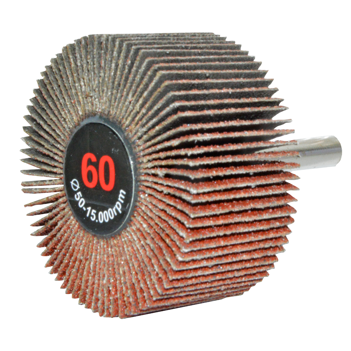 Pack 5 Ruedas Flap Tenazit con Vástago de óxido de aluminio, Grano 60, de 50 x 25 x 6.4 mm