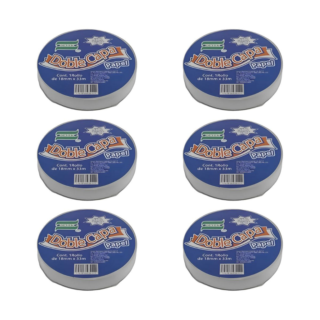 Pack 6 Cinta Adhesiva Doble Cara Devek 18 Mm X 33 M Color Blanco