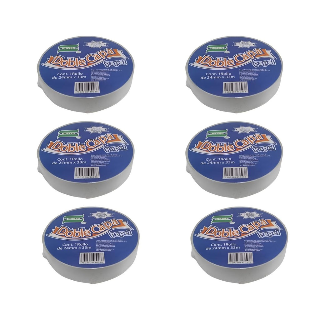 Pack 6 Cinta Adhesiva Doble Cara Papel Devek 24mm X 33m Color Blanco