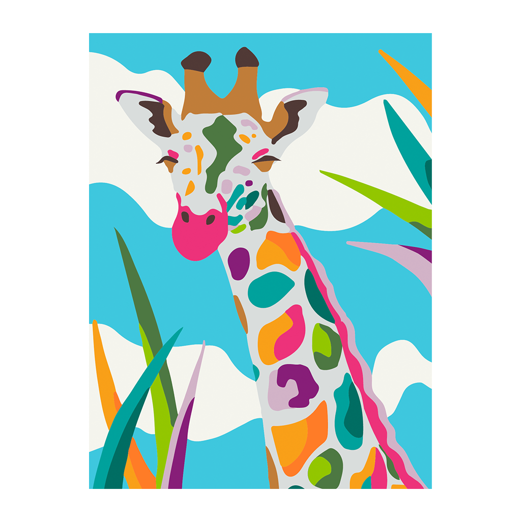 PINTA POR NÚMERO 30 x 40 JIRAFA DE COLORES