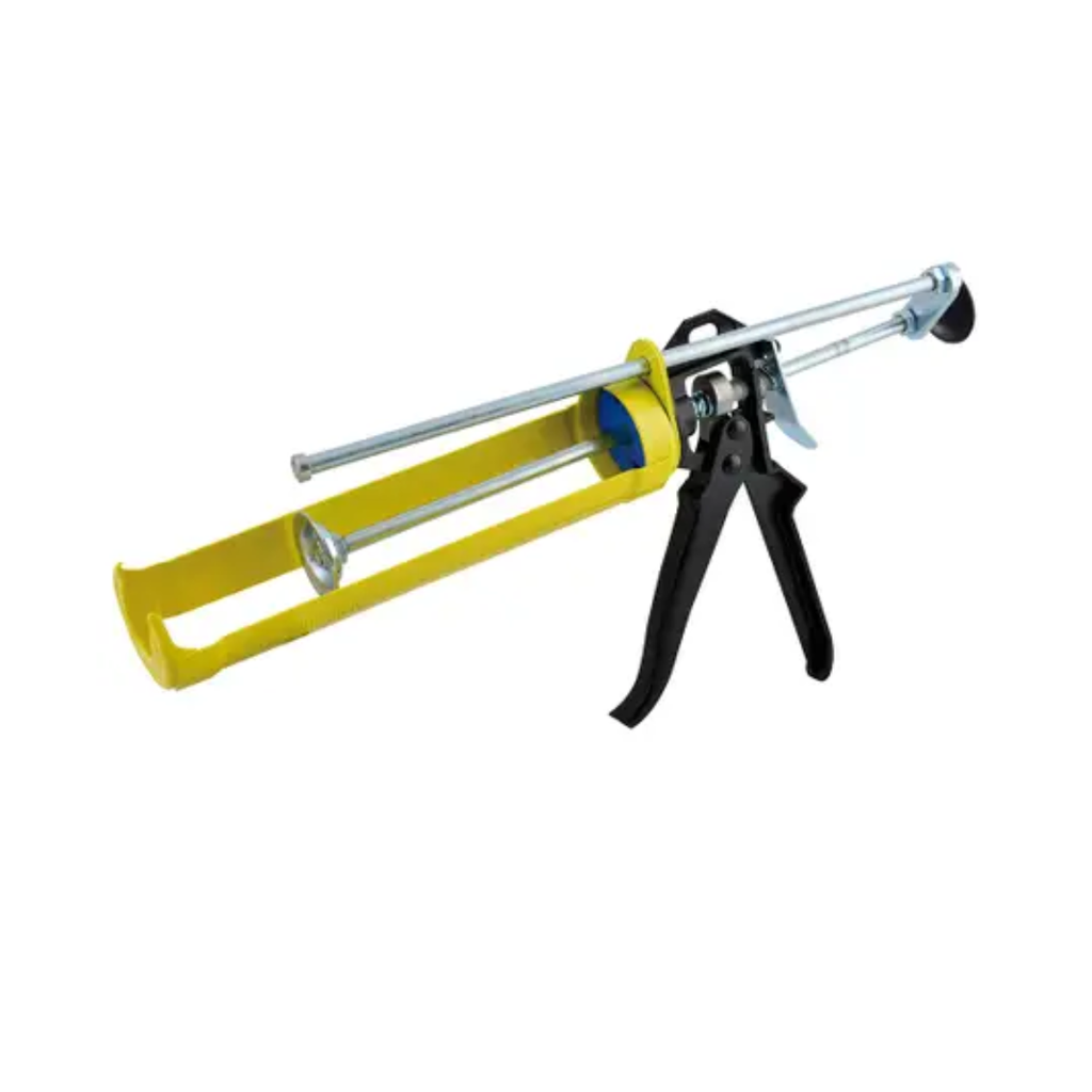 Herramienta manual diseñada para la dosificación precisa de selladores, adhesivos o silicones, utilizada en trabajos de construcción, reparación y acabados. Su estructura resistente permite un control uniforme del material aplicado, garantizando acabados limpios y profesionales.