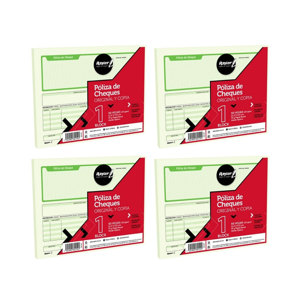 4 Block de Póliza Para Chueque Rayter Medio Oficio Verde 100 Juegos Cada Block