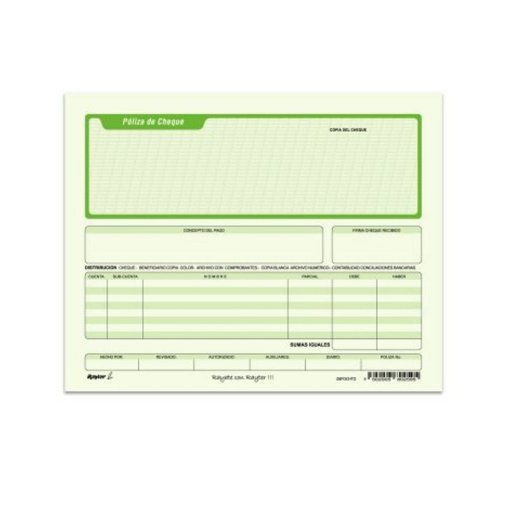 Poliza Cheque Rayter Medio Oficio Verde 4 Block 100 Juegos