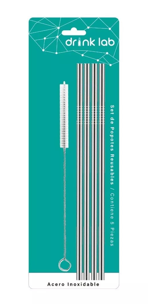 Incluye: 4 Popotes de Acero Rectos y 1 Cepillo.