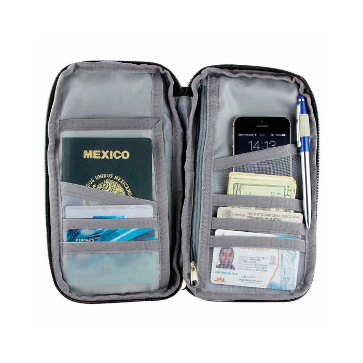 - Compartimento para pasaporte, visa, boleto de avión y tarjeta de crédito.