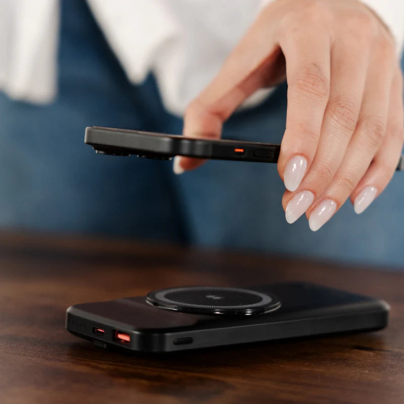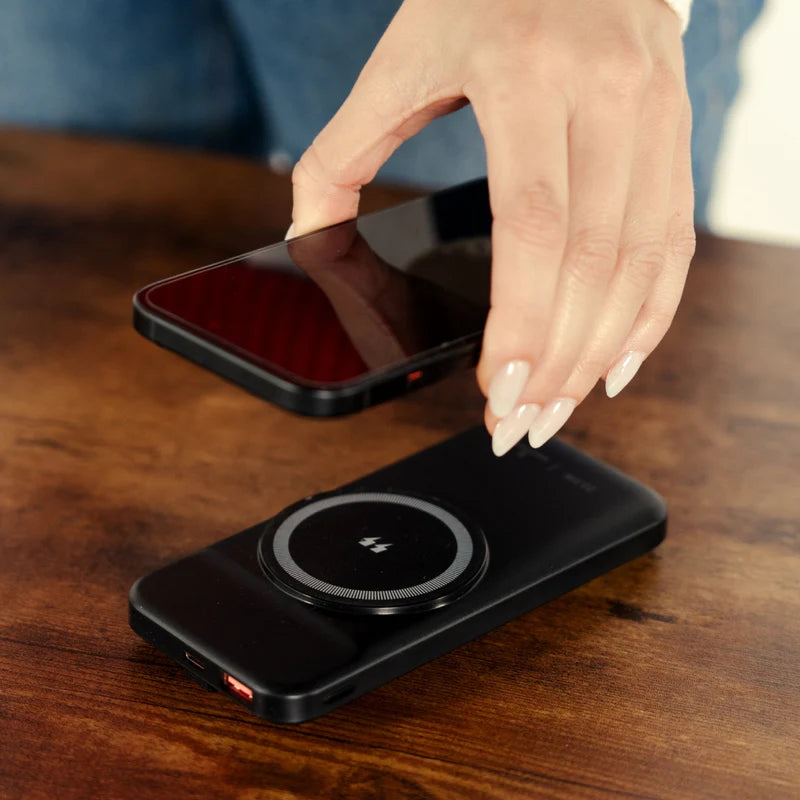 Compatibilidad con MagSafe: Diseñado para usuarios de dispositivos iPhone compatibles con MagSafe , este power bank magnético se ajusta perfectamente a la parte trasera de tu teléfono, brindando una conexión segura y sin cables adicionales.