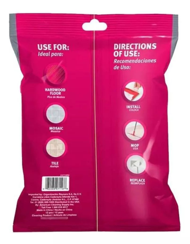 Los repuestos de toalla secas, atrapa polvo, cabello, suciedad y pelos de mascotas. Es perfecto para los pisos delicados y el paquete tiene 12 toallas.