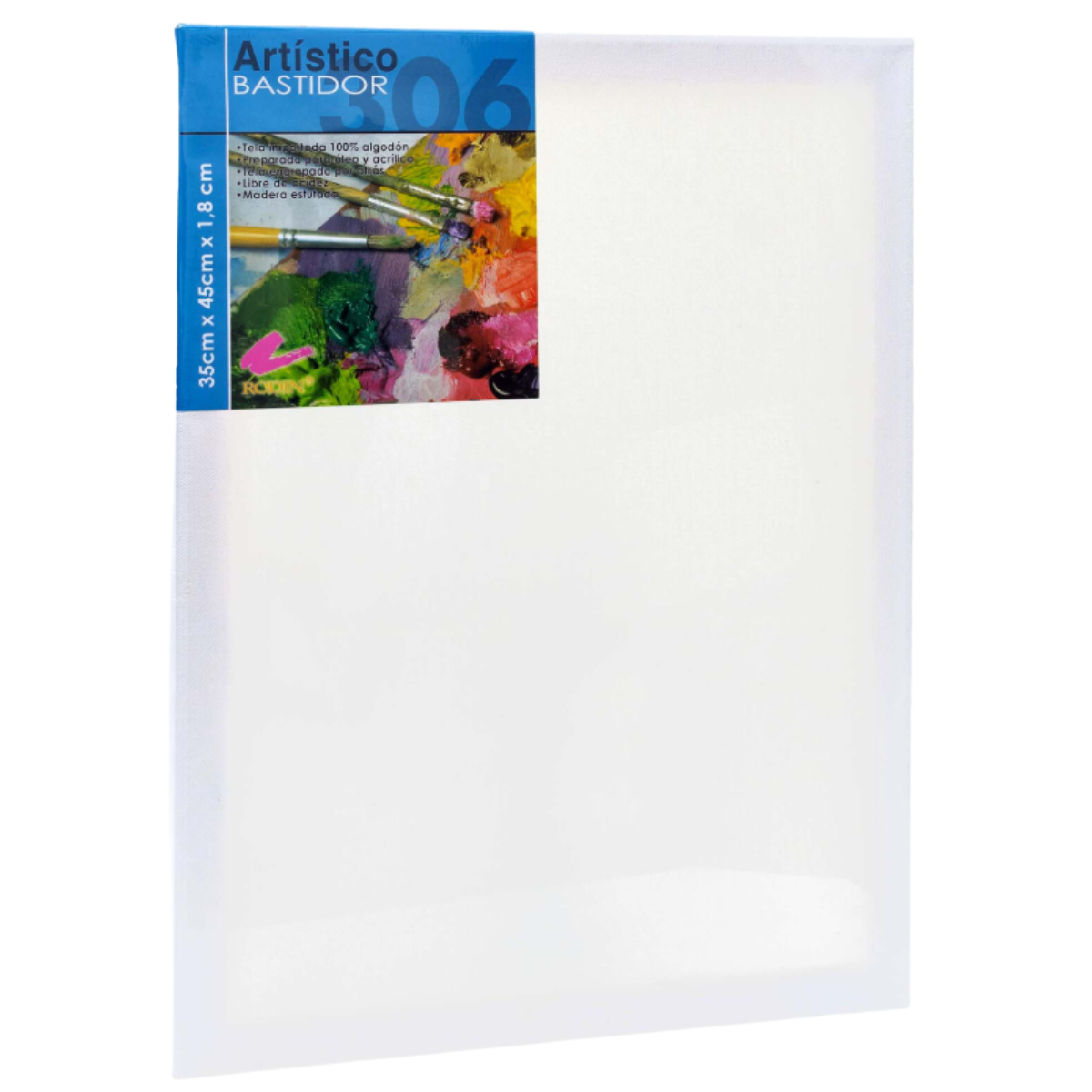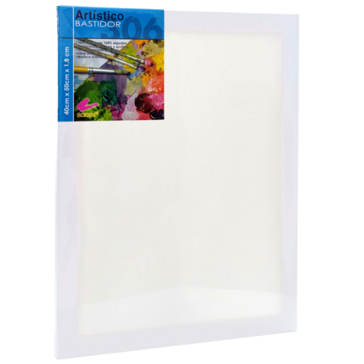 Bastidor con tela de calidad artística, montada sobre bastidor de madera.