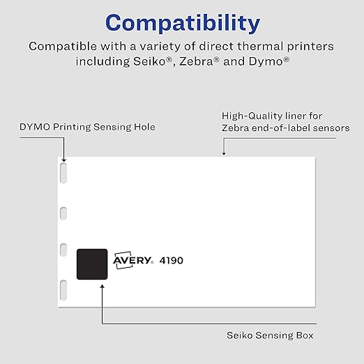 • Compatible con varias impresoras de etiquetas térmicas directas, incluyendo DYMO, Zebra y Seiko.