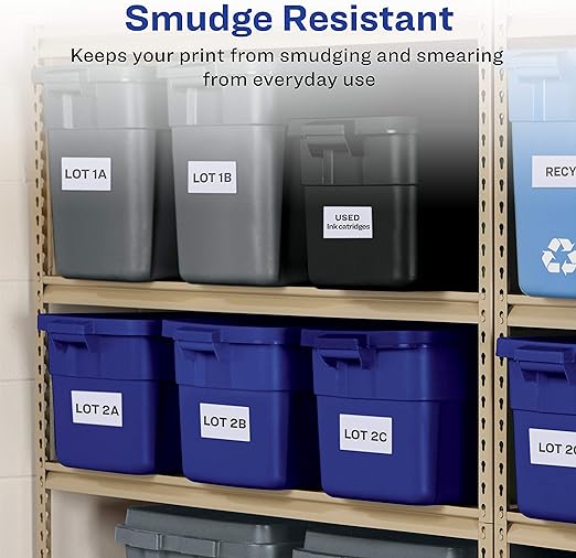 • Material de etiqueta resistente al agua también resiste manchas, arañazos y grasa para permanecer legible durante cualquier proyecto de etiquetado.