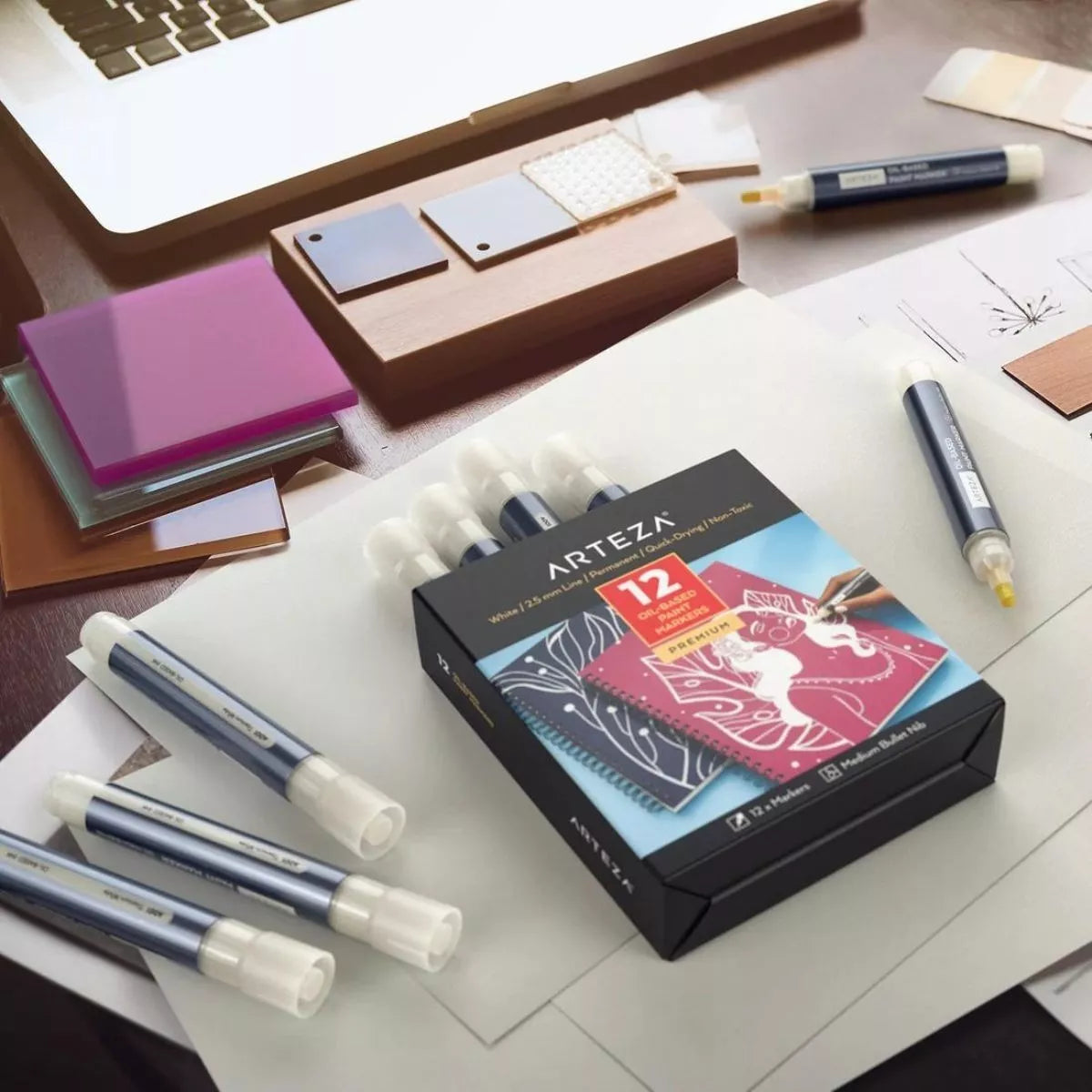 Set 12 Marcador Aceite Permanente Blanco Titanio Arteza
