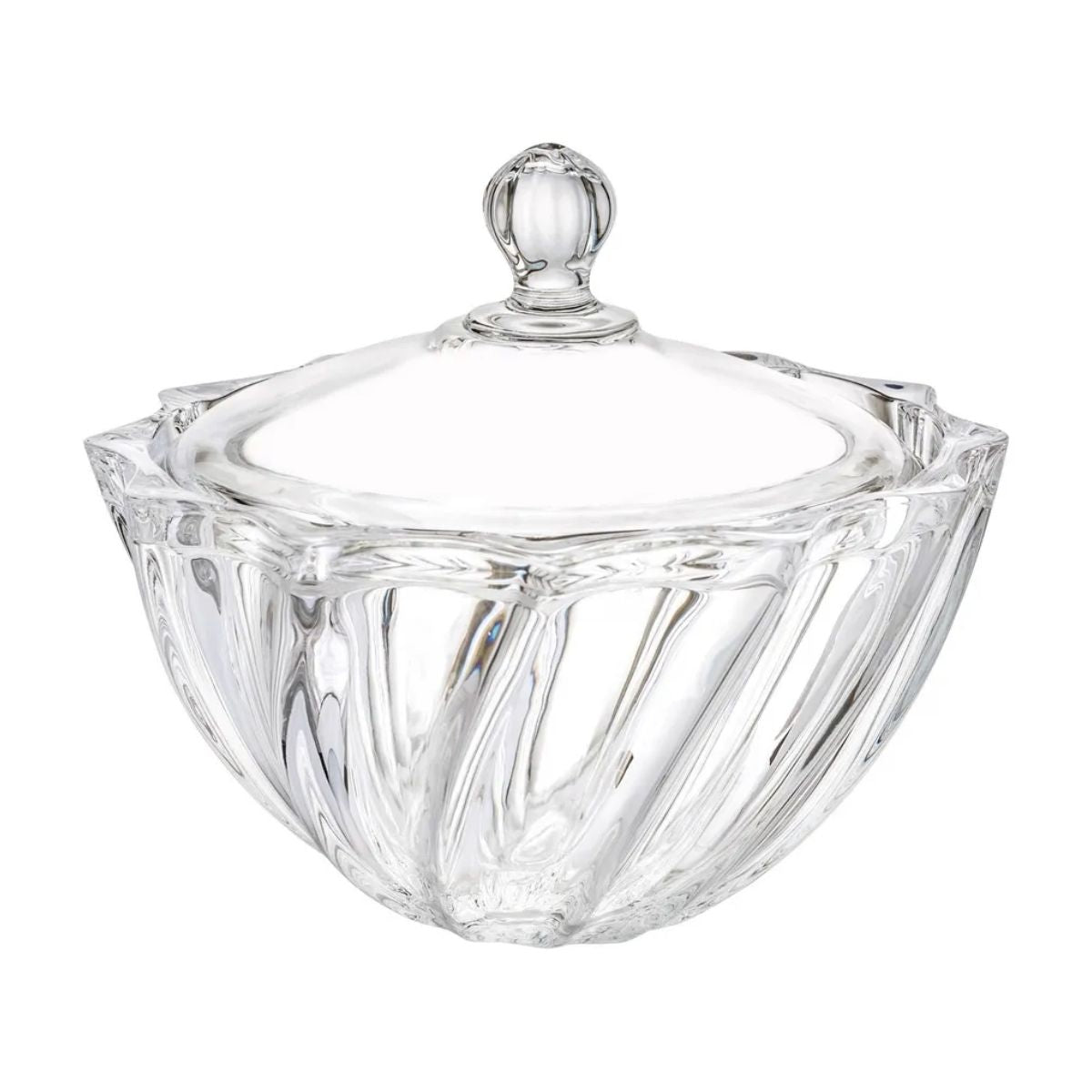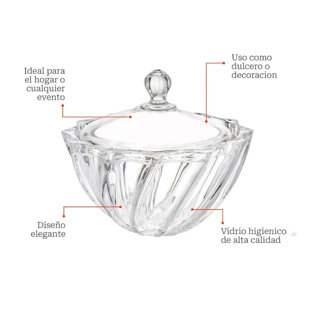 Bomboneras/Dulcero de vidrio con tapa, de 12.5 cm de diámetro, modelo Dalia marca Vittori.