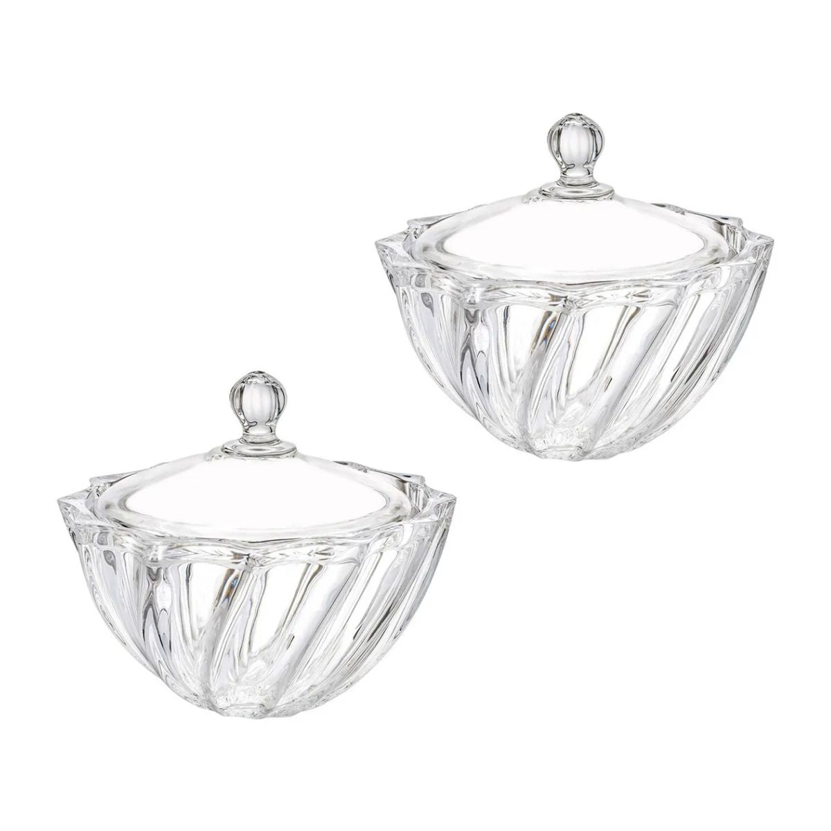 Set 2 Bombonera Azucarera Dalia Chica Vidrio Cristal C/tapa Color Transparente