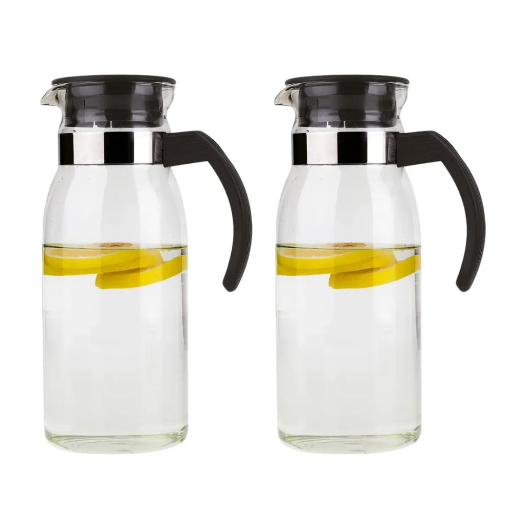 Set 2 Jarra Aurora Vidrio Asa Color Negra 1l Hogar Transparente